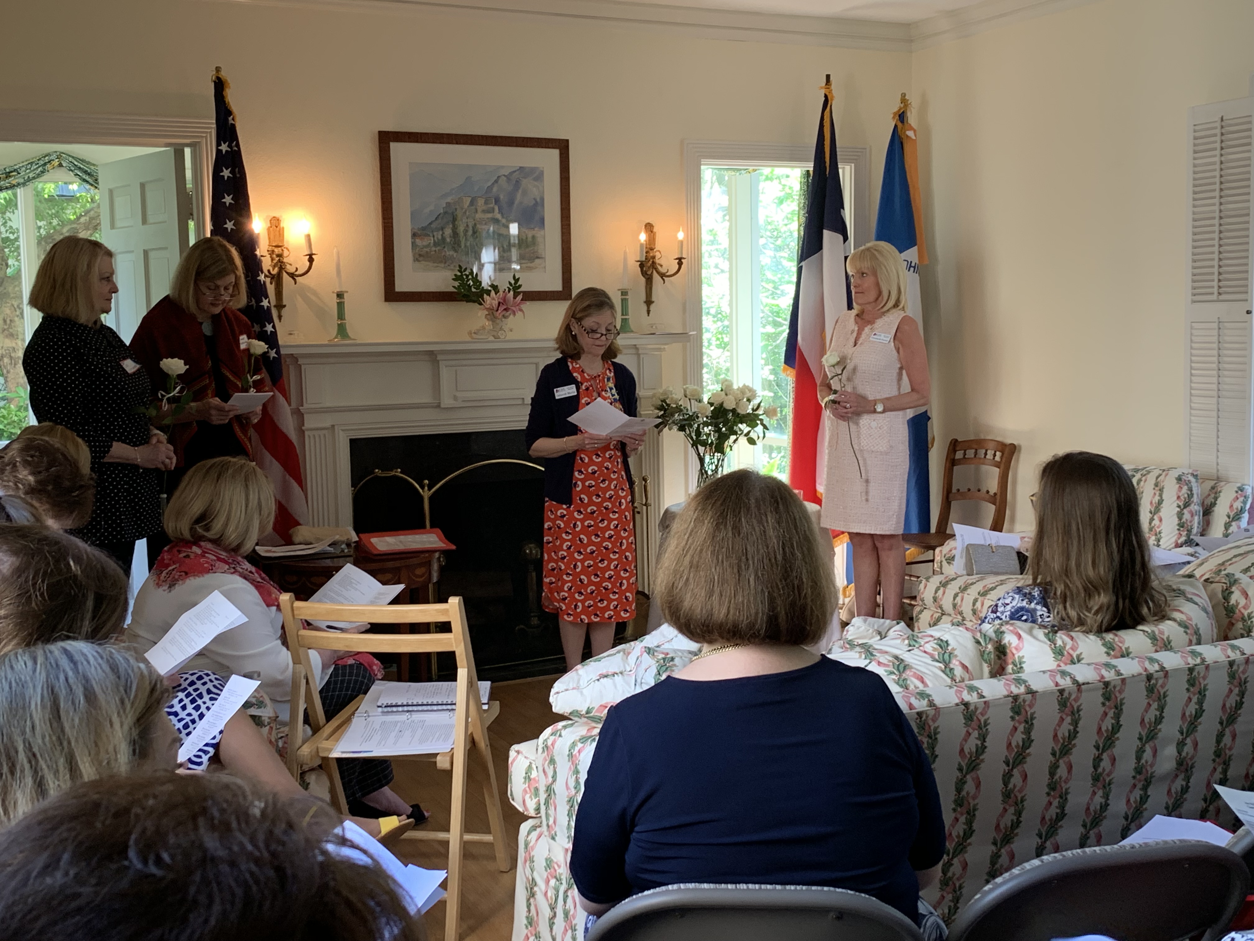 The John Mc Knitt Alexander Chapter, NSDAR, continues to support educational, women's, and patriotic causes, as well as historical preservation. For the past several years for the DAR National Day of Service, chapter members have volunteered at Books Between Kids which provides summer reading books for underserved elementary children in Houston. We support our active servicemen and women and veterans — today's Patriots — in our support for Fisher House, the Veterans Administration (VA), and with care packages to members of the armed forces on the front lines. The chapter participates annually with other Houston-area chapters in Flag Day, Constitution Week, Good Citizens awards to high school seniors, National Defense awards to ROTC cadets, and naturalization events.