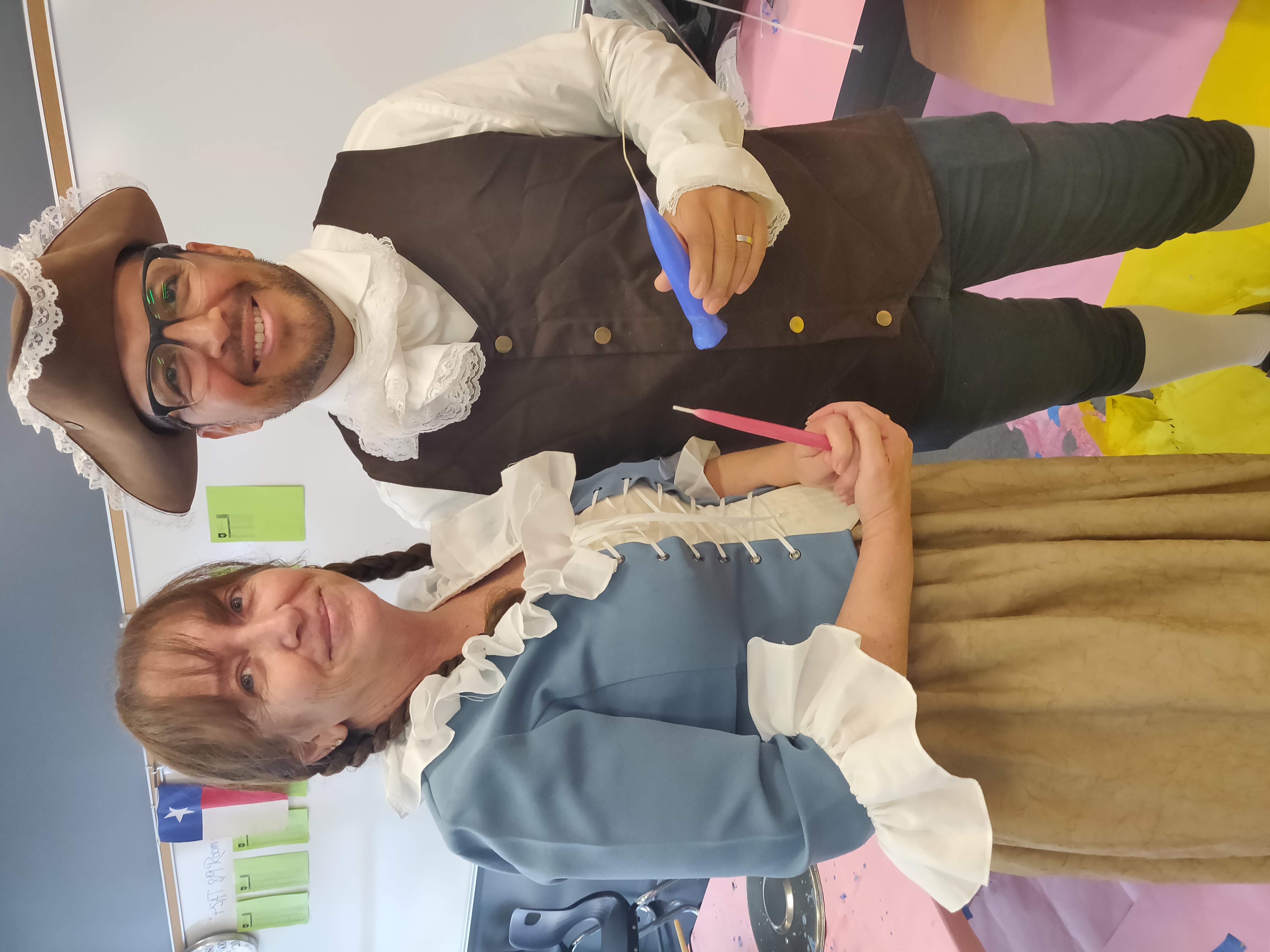 The American History teachers at this school, in cooperation with the rest of the staff, put on an interactive and exciting History Day for their 6th, 7th, and 8th graders. American History focused activities include candle-making, baking molasses cookies, “churning” butter, and building log cabins.