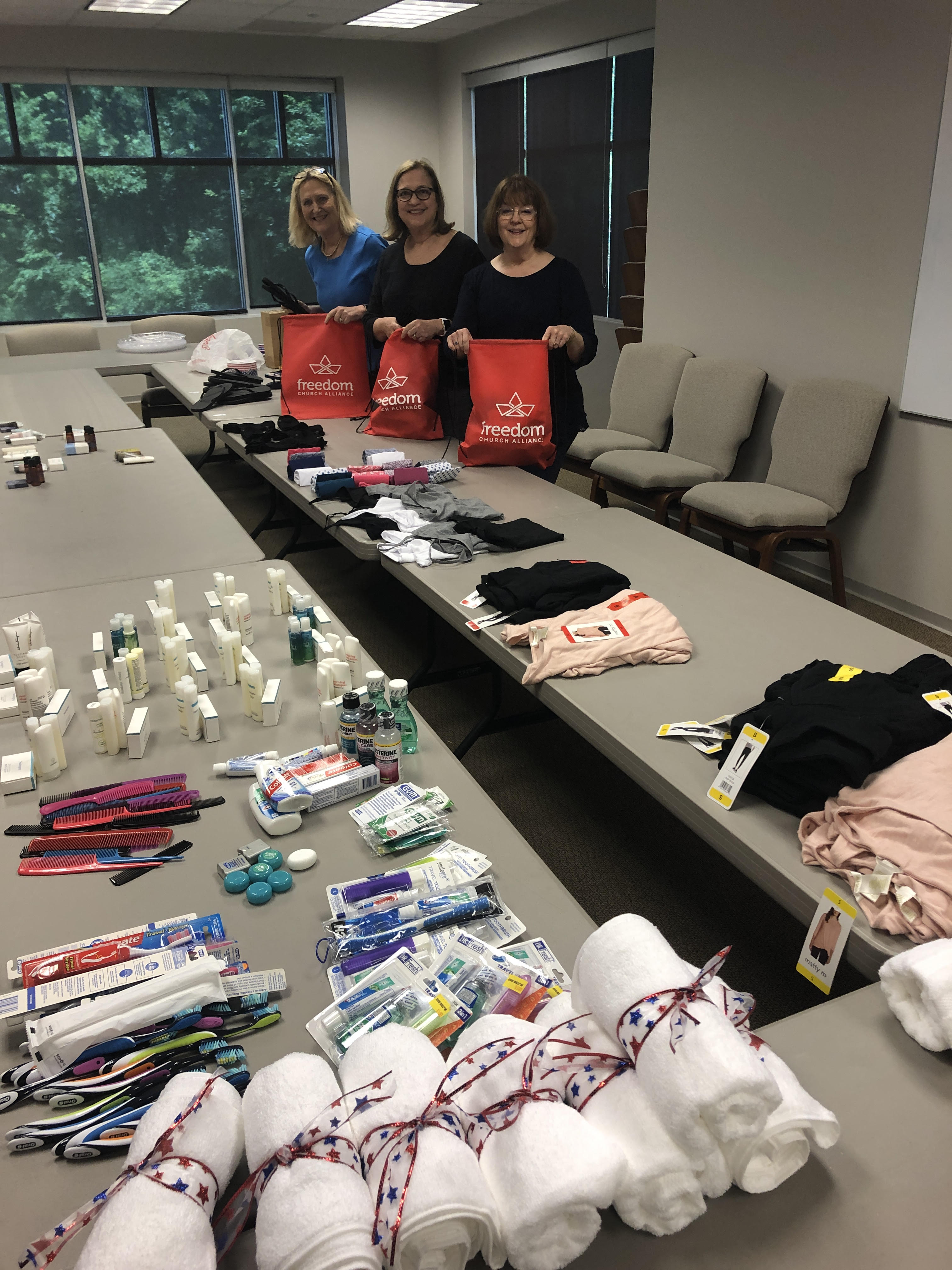 Our Chapter collects supplies and raises money to fill “Go Bags” that will be passed out to a survivor of human trafficking via law enforcement. Each Go Bag holds essentials that a survivor needs after rescue: a change of clothes (tops, bottoms, undergarments, and flip flops) plus basic toiletries (toothbrush, toothpaste, comb, shampoo, conditioner).